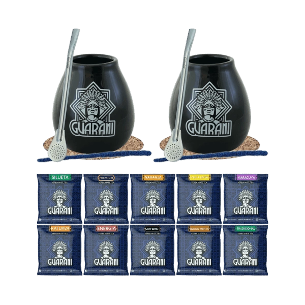 Yerba Mate Set für zwei Personen Bombilla Mate Becher 10x50g