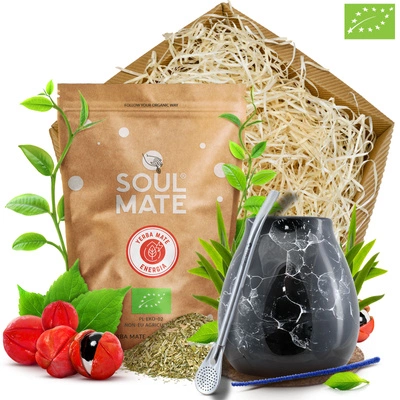 Geschenkset Mate Tee: Verde Mate Energía Guaraná 0,4kg + Yerbomos X + Kalebasse + Bombilla