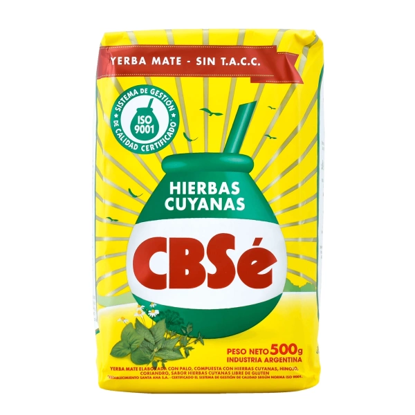 • CBSé Hierbas Cuyanas ist eine argentinische Mate Tee mit einem milden, frischen Geschmack, angereichert mit Kräutern. Eine ausgewogene Mischung mit feinem Aroma und angenehm anregender Wirkung.