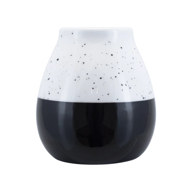 Keramischer Mate Becher Caballo – ein bequemer, solide gefertigter Mate Becher mit einem Fassungsvermögen von etwa 350 ml. Die Form des Gefäßes ist von traditionellen südamerikanischen Kalebassen inspiriert. Innen und außen glasiert. Mit einer hellen Glasur überzogen und mit schwarzen, unregelmäßigen Punkten und Mustern verziert. Am Boden ist ein stilvoller Ausschnitt in Schwarz. Der Designer-Mate-Becher wird die Ausrüstung eines jeden Fans perfekt ergänzen!