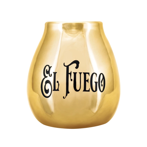 - Keramischer Mate Becher mit dem Logo El Fuego in goldener Farbe –ein stilvoller, praktischer Mate Becher.
