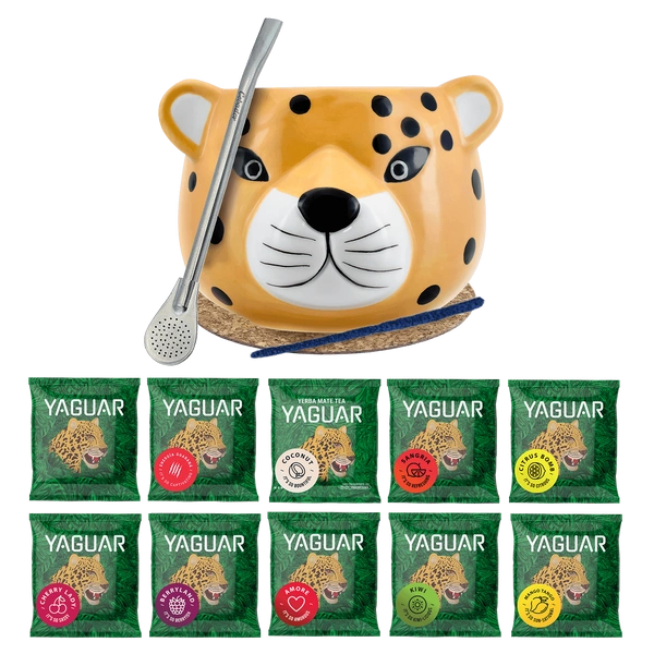 Mate Tee Set: Proben Yaguar 10x50g + Kalebasse + Bombilla