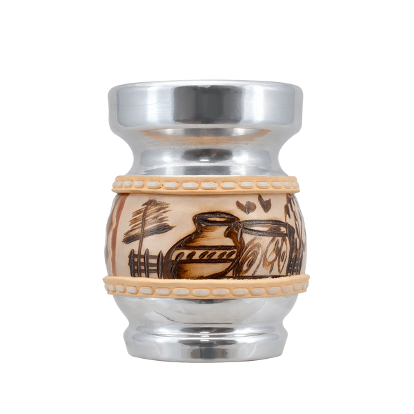 „Salvador” ist Mate Becher mit einem Fassungsvermögen von etwa 150 ml, der aus Holz Palo Santo (sog. "heiliges Holz"), das mit Metall überzogen war, hergestellt wurde. Die Pflanze kommt in Südamerika vor und ist bekannt dafür, dass sie ein Harz mit einem ungewöhnlichen, natürlichen Duft absondert. Der darin zubereitete Aufguss zeichnet sich durch ein einzigartiges Aroma aus. Die solide Konstruktion des Bechers macht ihn widerstandsfähig gegen mechanische Beschädigungen und hält die Temperatur des Aufgusses gut.