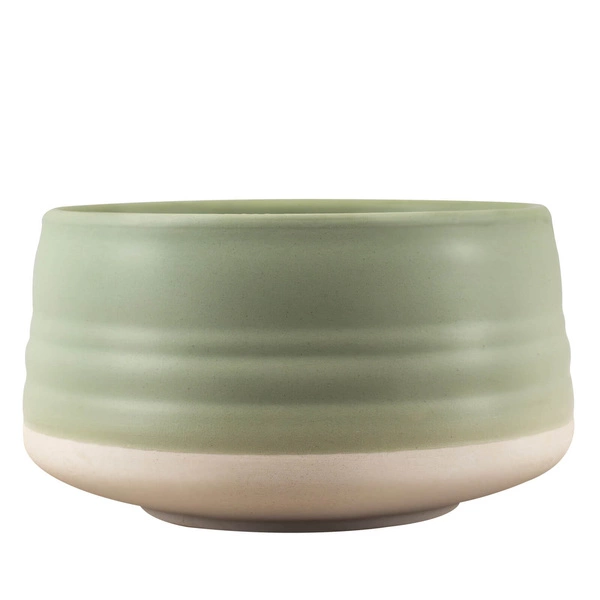 Das Schälchen Matchawan Higashi wird für die Zubereitung und das Aufbrühen von Matcha-Tee verwendet. Es ist aus hochwertiger Keramik gefertigt und seine Wände sind in Beige- und Pistazientönen glasiert. Sein Design ist traditionell, aber die unregelmäßige Form der Außenwände verleiht ihm einen modernen Charakter. Das Schälchen liegt perfekt in der Hand, ist umfassend und pflegeleicht - es kann bedenkenlos in die Spülmaschine gestellt und mit Spülmittel gereinigt werden.
