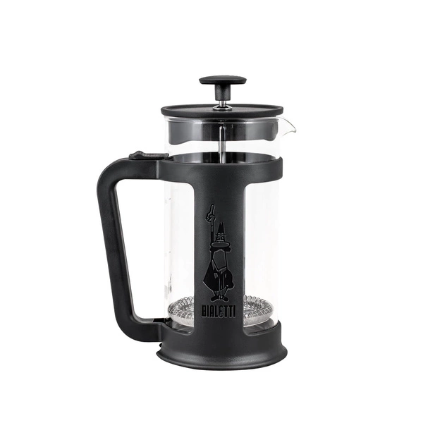 Kaffeezubereiter French Press, also sog. „Pressstempelkanne" ermöglicht die Zubereitung von Kaffee, Tee, Mate Tee und anderen Aufgüssen ohne Kaffeesatz! Das Produkt ist die ideale Lösung für alle, die ihre Aufgüsse schnell und einfach zubereiten möchten, ohne eine Million verschiedener Zubehörteile. Die Funktionsweise des Geräts ist ganz einfach. Du musst nur den Deckel mit dem Stößel und dem Filterelement entfernen, den Behälter mit gemahlenem Kaffee, getrocknetem Tee oder Mate Tee füllen und Wasser einfüllen. Wenn der Kaffee fertig ist, drückt man die Presse langsam nach unten. Auf diese Weise sinkt der Kaffeesatz bis zum Boden und das von ihm getrennte Getränk kann mit Genuss getrunken werden! French Press hat ein Fassungsvermögen von 350 ml - die ideale Kapazität für die Zubereitung von 1 bis 2 Portionen eines köstlichen Getränks auf einmal. Der Kaffeezubereiter wird von der legendären italienischen Marke Bialetti hergestellt, die für die Herstellung von hochwertigem Brühzubehör für Kaffee bekannt ist. Das Gerät, das wir anbieten, ist nicht anders. French Press Bialetti Smart zeichnet sich durch höchste Qualität in der Ausführung und stilvolles Design aus. Das ist ein absolutes Muss in der Küche eines jeden Liebhabers von aromatischem Kaffee, wärmendem Tee, anregendem Mate Tee und anderen köstlichen Aufgüssen!