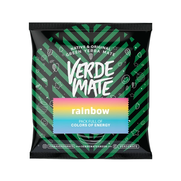 - Verde Mate Green Rainbow ist eine energetisierende Mischung aus brasilianischer Mate Tee mit Himbeeren, Orange, Goji-Beeren und Jasmin. Ein volles Geschmacksspektrum, natürliches Koffein und eine einzigartige Komposition aus pflanzlichen Inhaltsstoffen.