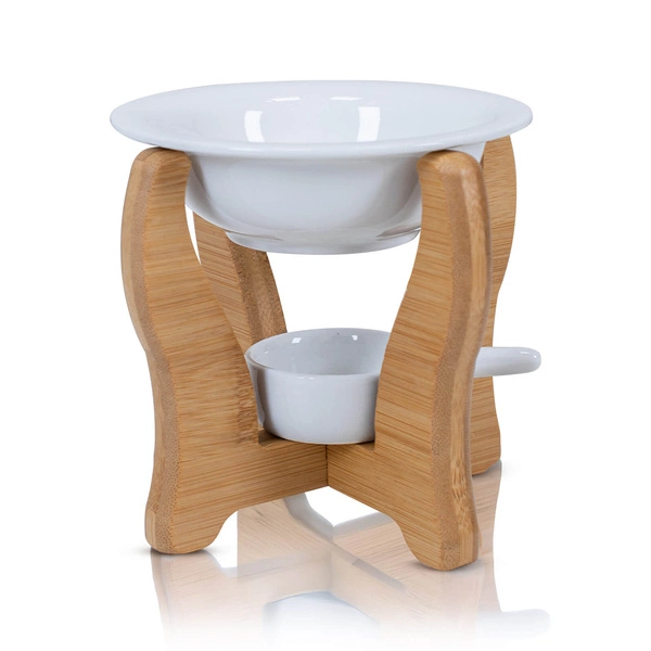 Der Aromatherapie-Brenner mit Holzelementen ist ein praktisches und formschönes Accessoire, das sich leicht in die Atmosphäre der häuslichen Entspannung einfügt. Mit seiner modernen Form und der Kombination aus Holz und Keramik passt er perfekt zu gemütlichen Innenräumen - ob modern oder von der Natur inspiriert.