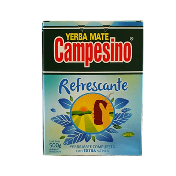 - Refrescante-bedeutet Erfrischung — das ist eine ausgewogene Komposition, leichte und angenehme. Dieser besteht aus ungefähr 8% von Minzblättern und Minzöl. Erfrischende, aromatische, fein geschnittene Blätter mit Stengeln von Mate Tee.
